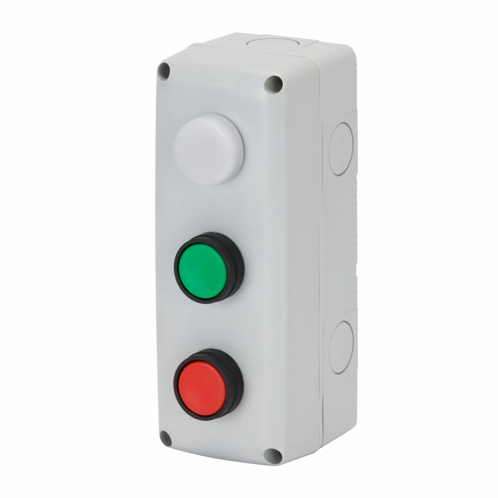 Szerelt szürke tokozat 1db fekete és 1db zöld gombbal 1db visszajelzővel IP66